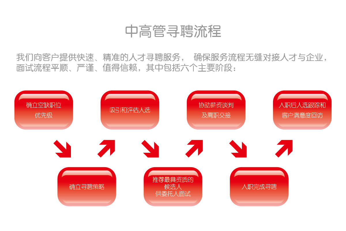我们致力于为世界500强跨国公司、国内上市企业、大型企事业机构及民营企业等提供中高级人才搜寻服务企业中高管招聘。
