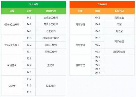 专业路线则分为初做者、有经验者、业务骨干、行业专家等4个层级12个职位。