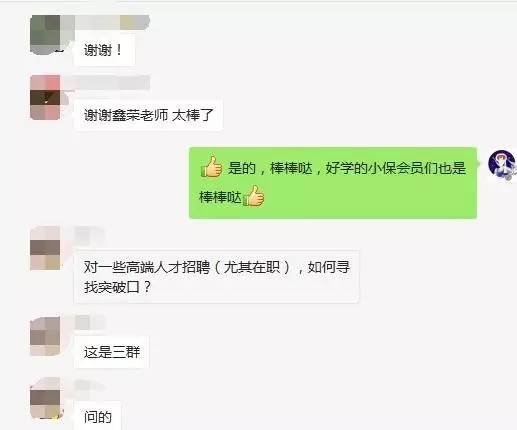 老师讲授完毕,群内小保会员和老师进行了良好的互动,在线提问招聘相关的问题,老师一一给大家详细解答,群里大讨论持续了很长时间。赵老师不愧是经验丰富,所有问题都能回答的面面俱到,群里听课的朋友们都满意而归。